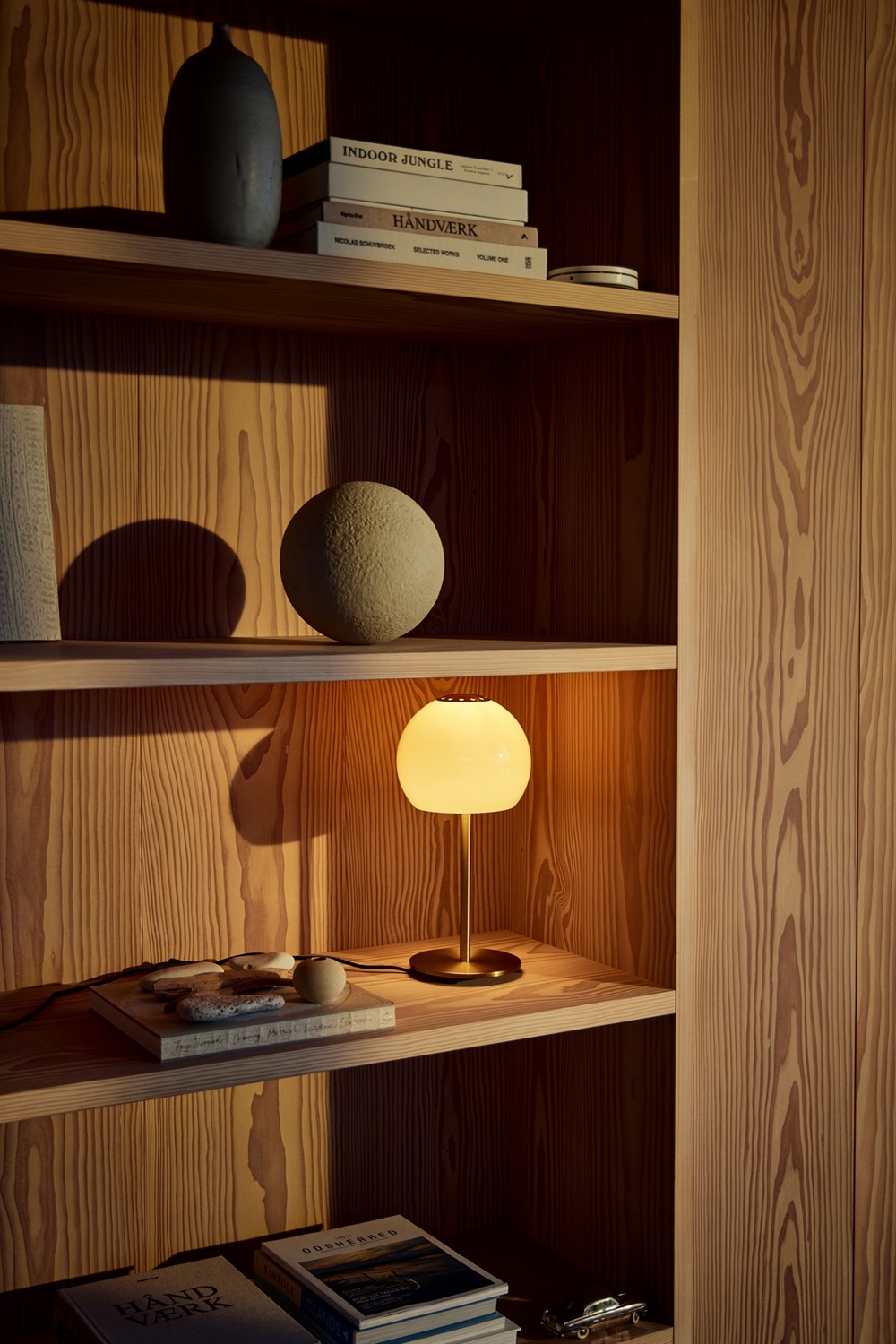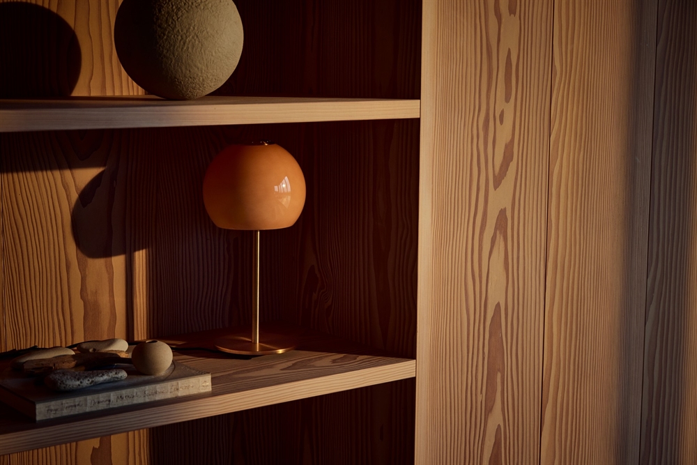 Mit der 2026 eingeführten Tischleuchte Ball Glass erhält das schlichte und zeitlose Design eine zusätzliche Dimension, die mit bernsteinfarbenem oder sandgrauem Glas Wärme und Atmosphäre in die Einrichtung bringt. Zusammen mit einer perforierten Metallplatte an der Oberseite verleiht der Einsatz von Glas Benny Frandsens ikonischem Ball-Design eine moderne Ästhetik.