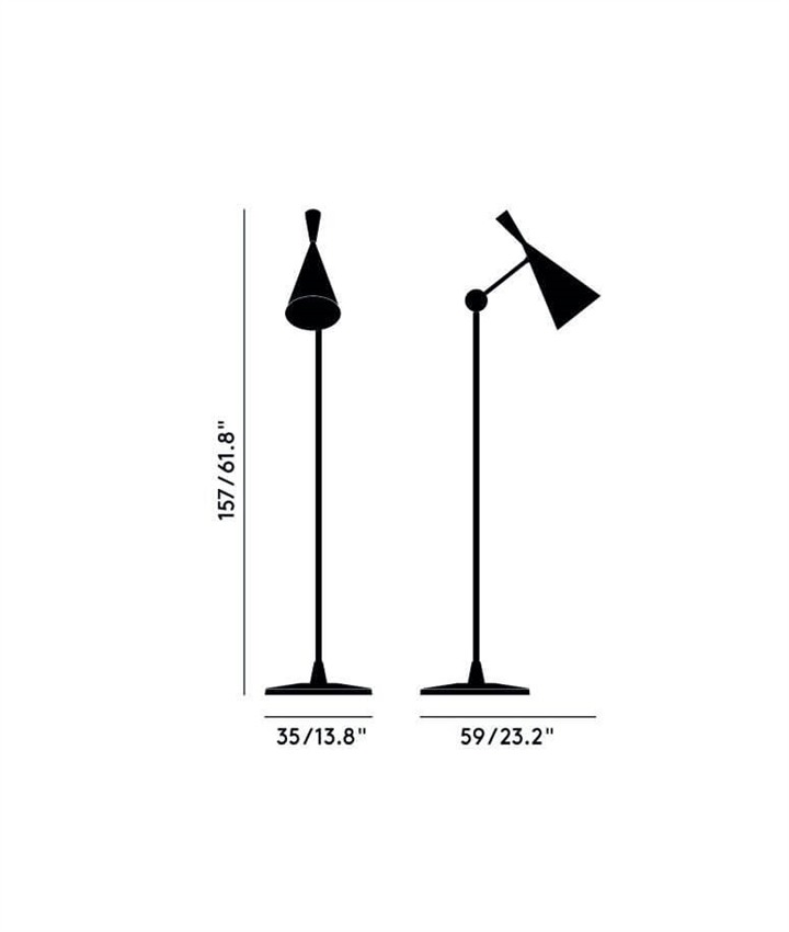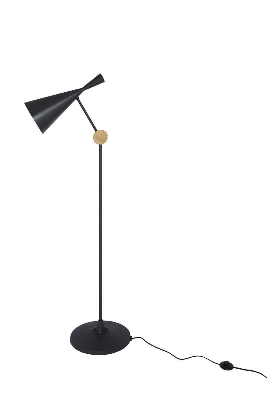 Die Stehlampe der Beat-Serie ist wie die anderen Lampen der Serie von der skulpturalen Einfachheit inspiriert, die in klassischen indischen Wassergefäßen zu finden ist. Der Schirm wird von Handwerkern in Nordindien aus Messing nach einem alten Verfahren gefertigt, das vier Tage dauert. Die moderne Stehlampe hat einen schlanken, verstellbaren Arm und spendet ein weiches und warmes Licht.