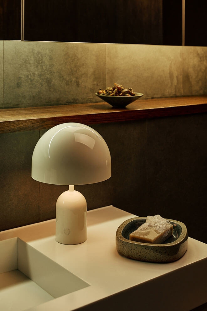 Die wiederaufladbare Batterielampe Bell verdankt ihren Namen der klassischen Glockenform und hat eine reflektierende Oberfläche, die Ton und Eigenschaften der Umgebung widerspiegelt. Bell Portable ist dimmbar und kann je nach gewählter Helligkeit bei voller Ladung bis zu 9 Stunden leuchten. Das vollständige Aufladen mit dem mitgelieferten USB-Kabel dauert etwa fünf Stunden. Die Tischleuchte ist leicht mitzunehmen und kann beispielsweise auf dem Nachttisch oder Couchtisch, in einem Regal, auf der Fensterbank platziert werden und kann auch im Freien auf dem Balkon oder der Terrasse verwendet werden.