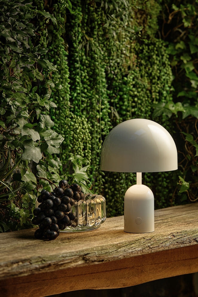 Bell Portable ist in verschiedenen Farben erhältlich. Bell gibt es auch als größere traditionelle Tischleuchte.