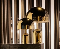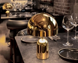 Die Tischleuchte Bell verdankt ihren Namen der klassischen Glockenform und hat eine reflektierende Oberfläche, die Ton und Charakteristika der Umgebung widerspiegelt. Die Lampe kann beispielsweise auf dem Nachttisch oder Couchtisch, in einem Regal oder vielleicht auf der Fensterbank platziert werden.