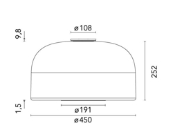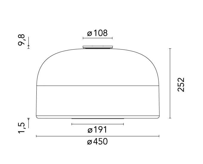Der Schirm besteht aus Opalglas, das als Sandwich aus drei Glasschichten aufgebaut ist, wobei die weiße Schicht zwischen zwei transparenten Schichten eingefügt ist. Die Öffnung am unteren Ende des Schirms ist durch einen weißen Aluminiumring geschützt.
