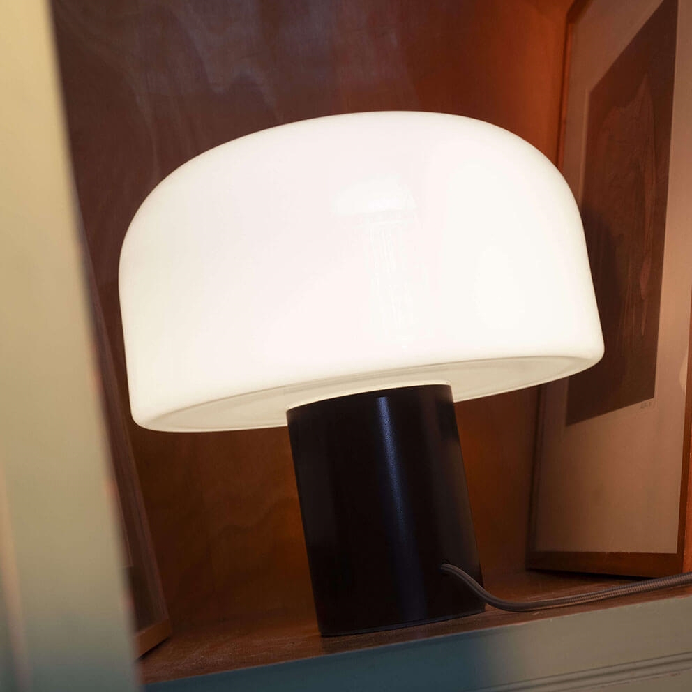 Die Bellhop Glas Tischleuchte sorgt für eine gleichmäßige und warme Beleuchtung und passt mit ihrem eleganten Design gut in viele Einrichtungsstile. Die Lampe ist dimmbar, sodass das Licht an jede Situation angepasst werden kann und zur Schaffung der richtigen Atmosphäre im Raum beiträgt.