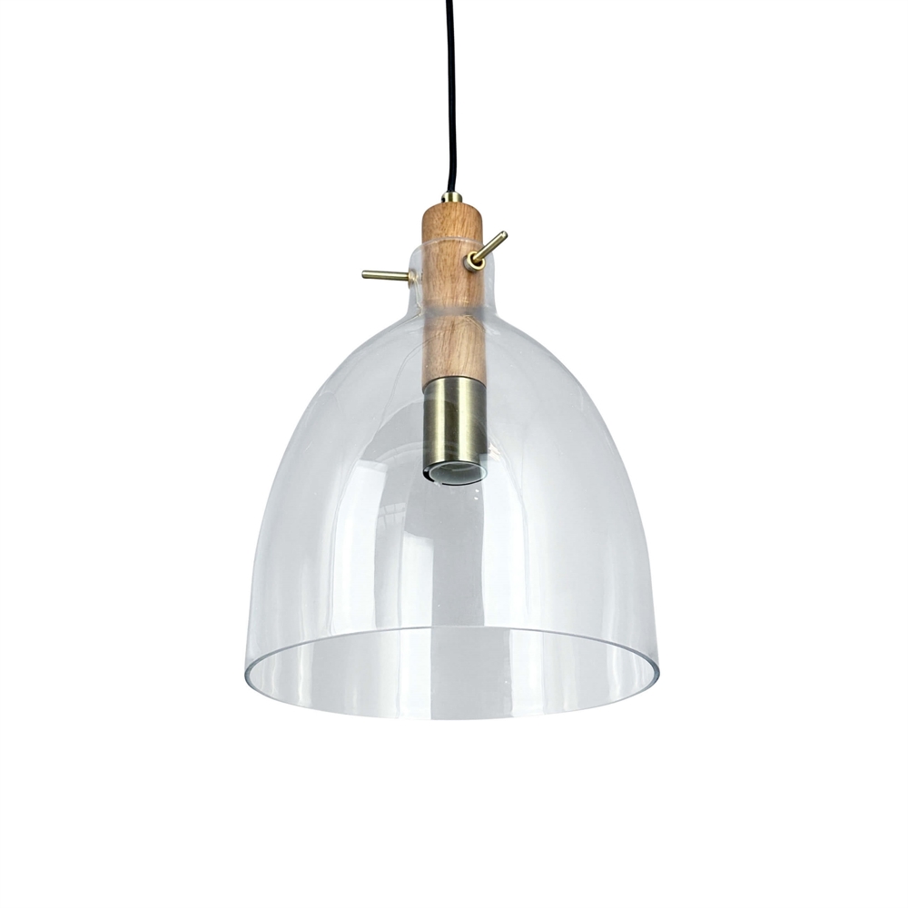 Bistro D30 Pendelleuchte, klar/Eiche/Messing