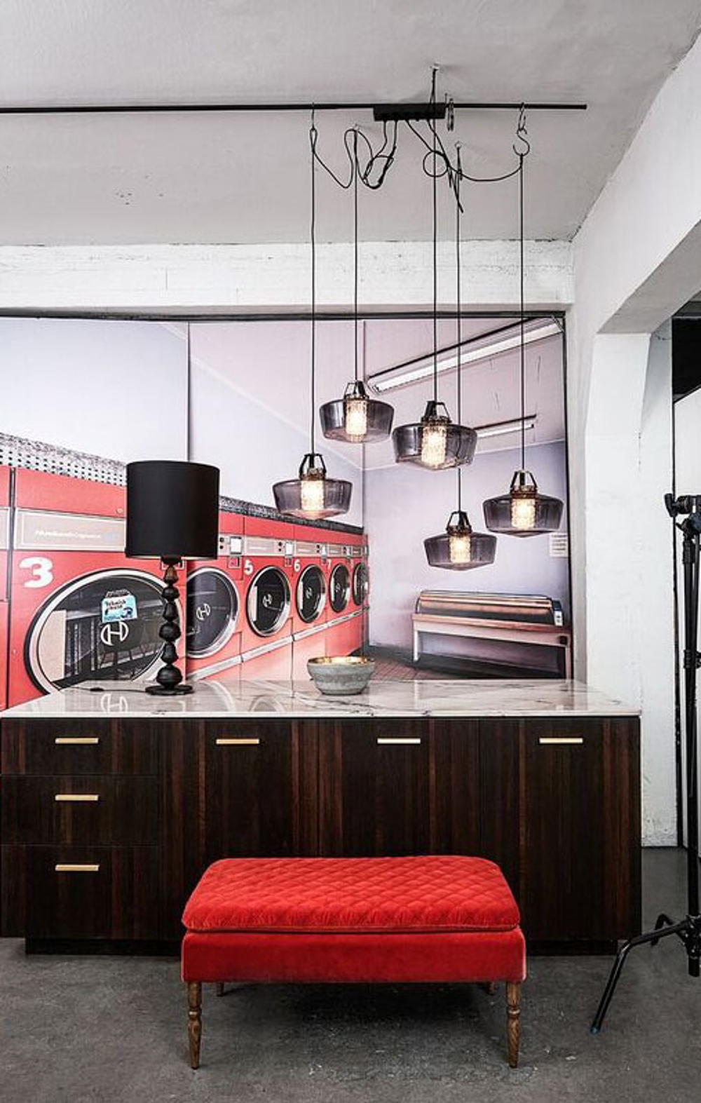 Der Lampenschirm ist ein handgefertigter schwarzer Stoffschirm mit silberner Innenschicht.