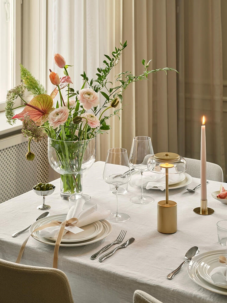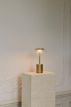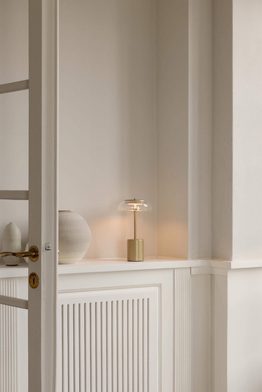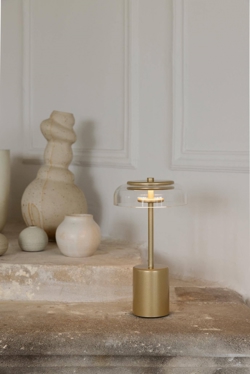 Blossi Mini Portable Tischleuchte / Batterielampe, nordic gold/klar