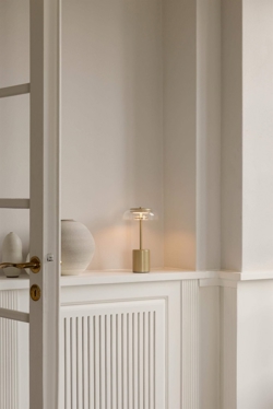 Nuura Blossi Mini Portable Tischleuchte/Batterielampe, nordic gold/klar - entworfen von Sofie Refer