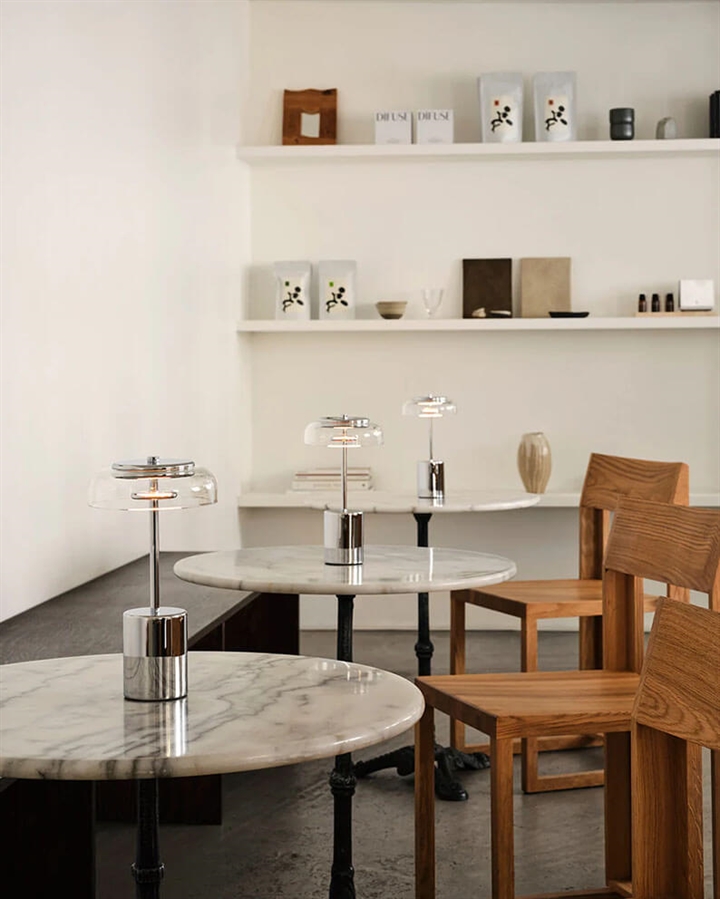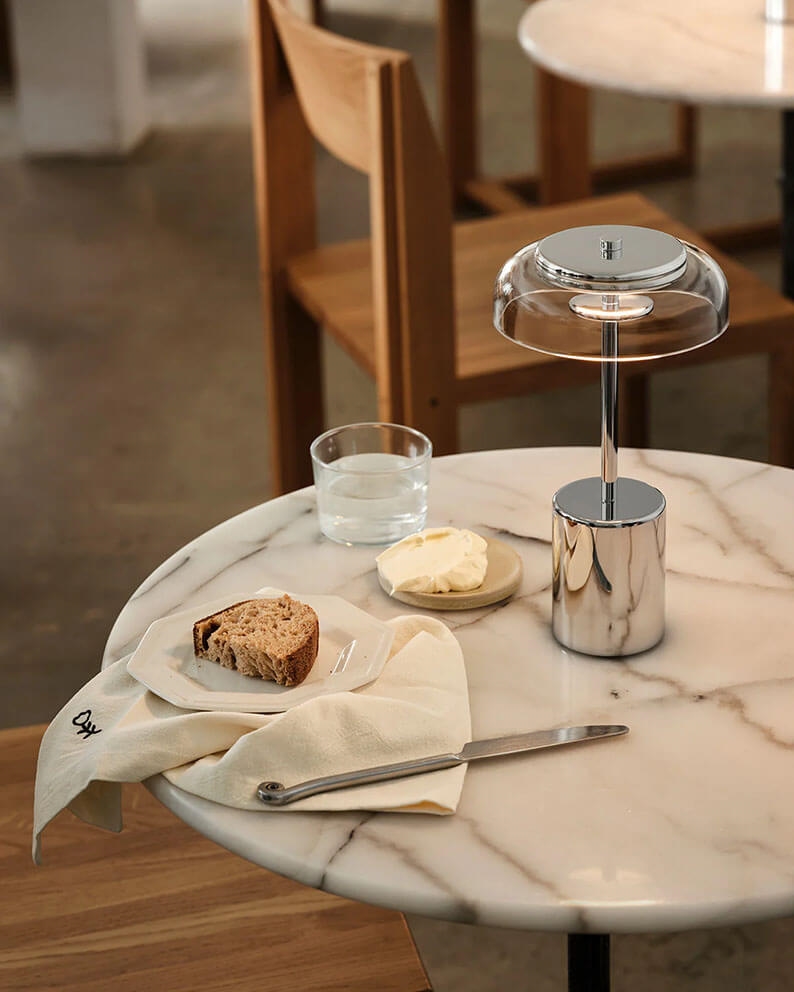 Diese wiederaufladbare Tischlampe ist eine kleine und tragbare Batterielampe in der Blossi-Serie. Die LED-Lichtquelle ist in drei Stufen dimmbar und verbreitet ein schönes, weiches Licht. Die Tischlampe kann sowohl drinnen als auch draußen verwendet werden und beispielsweise auf der Terrasse, in einem Regal, auf einem Tisch oder auf der Fensterbank platziert werden. Bei voller Leistung kann die Tischlampe 10 Stunden leuchten und das Aufladen dauert sechs Stunden.