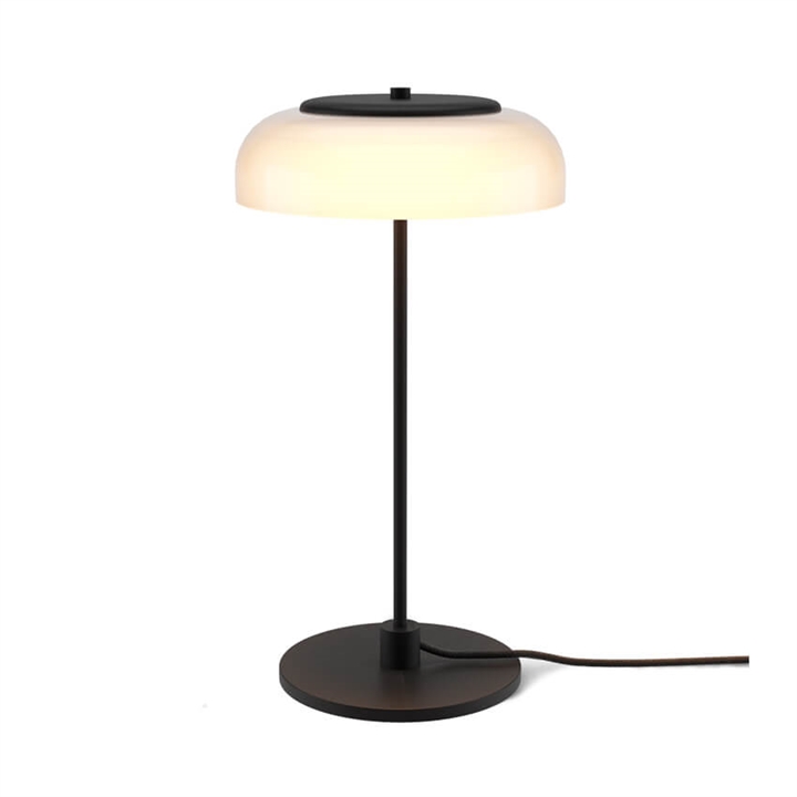 Blossi Tischleuchte ist eine elegante Tischleuchte mit mundgeblasenem Opalglas. Sie integriert die neueste LED-Technologie, die sich durch das speziell entwickelte LED-Modul ausdrückt. Im Inneren der Lampe platziert, spiegelt sich das Licht im Glas- und Metallschirm wider und verbreitet ein schönes, weiches, indirektes Licht im Raum.