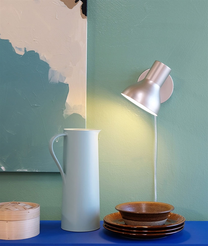Die Wandleuchte Bob mit eleganter metallischer Oberfläche ist ein schönes dänisches Design, das Ihrer Einrichtung einen exklusiven Ausdruck verleiht. Die einfache und zeitlose Wandleuchte ist in den drei Farbvarianten Beige, Blau und Grün erhältlich, die perfekt für moderne Wohnzimmer und Zimmer geeignet sind. Der Schirm kann gedreht und geneigt werden, sodass die Lichtausrichtung leicht angepasst werden kann, egal ob die Wandleuchte zum Lesen, als Arbeitslicht oder zur Schaffung einer gemütlichen Atmosphäre verwendet wird. Der Ein-/Ausschalter ist praktisch an der Basis platziert.