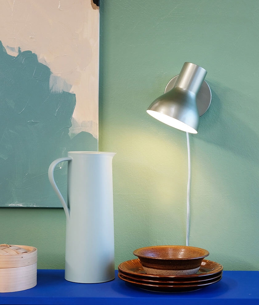 Die Wandleuchte Bob mit eleganter metallischer Oberfläche ist ein schönes dänisches Design, das Ihrer Einrichtung einen exklusiven Ausdruck verleiht. Die einfache und zeitlose Wandleuchte ist in den drei Farbvarianten Beige, Blau und Grün erhältlich, die perfekt für moderne Wohnzimmer und Schlafzimmer sind. Der Schirm kann gedreht und geneigt werden, sodass die Lichtausrichtung leicht angepasst werden kann, egal ob die Wandleuchte zum Lesen, als Arbeitslicht oder zur Schaffung einer gemütlichen Atmosphäre verwendet wird. Der Ein-/Ausschalter ist praktisch an der Basis platziert.