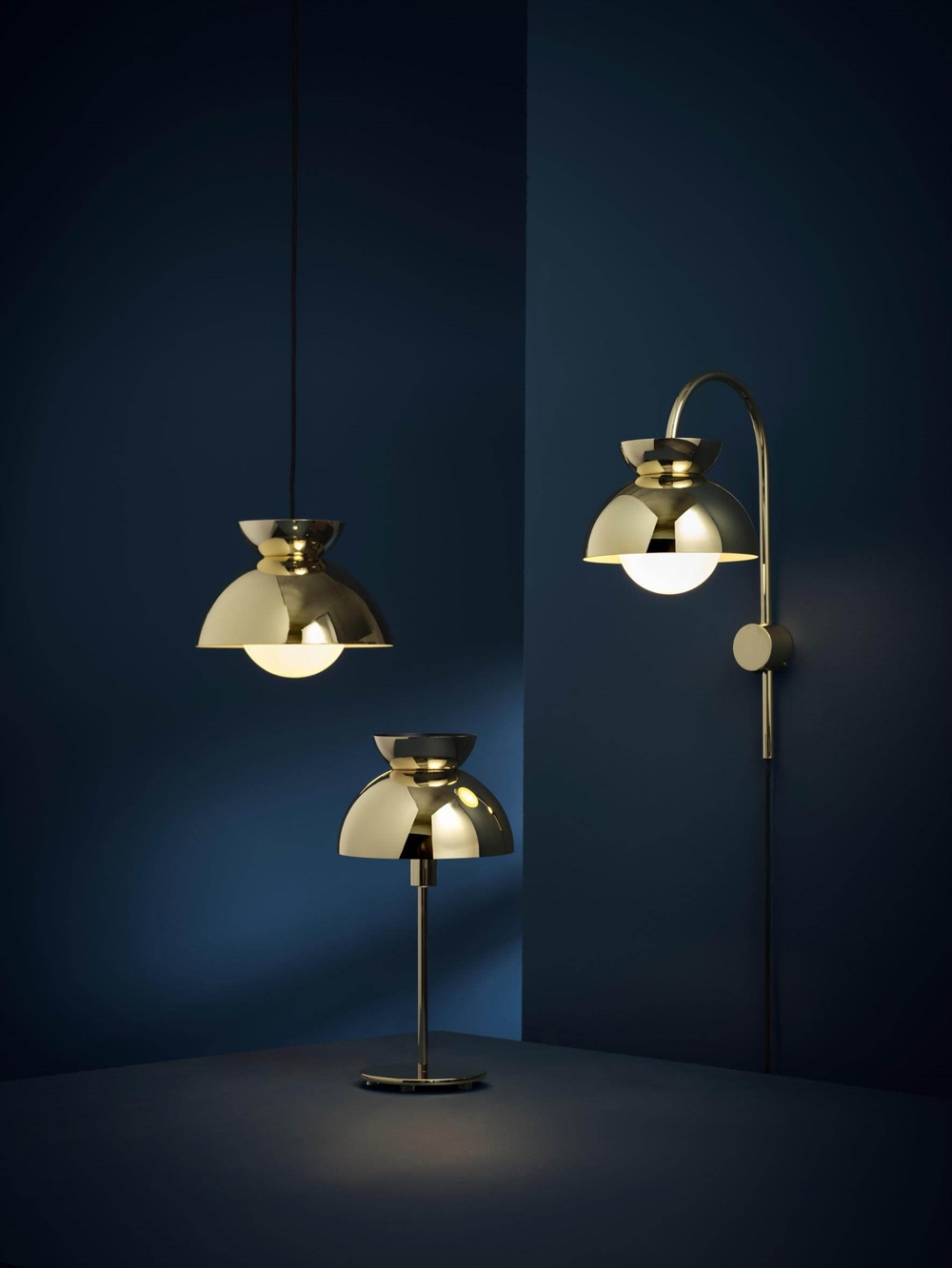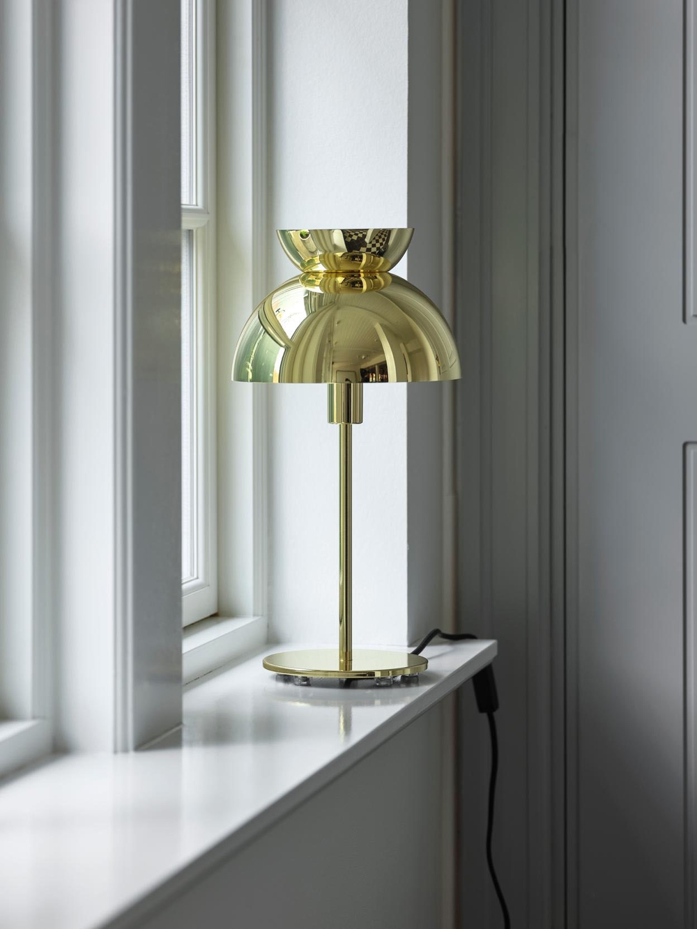Die Schirm der Butterfly Tischleuchte besteht aus drei Halbkugeln, die zueinander umgekehrt sind. Sie schaffen eine spannende, kontrastreiche Harmonie, inspiriert von der nordischen Designsprache.