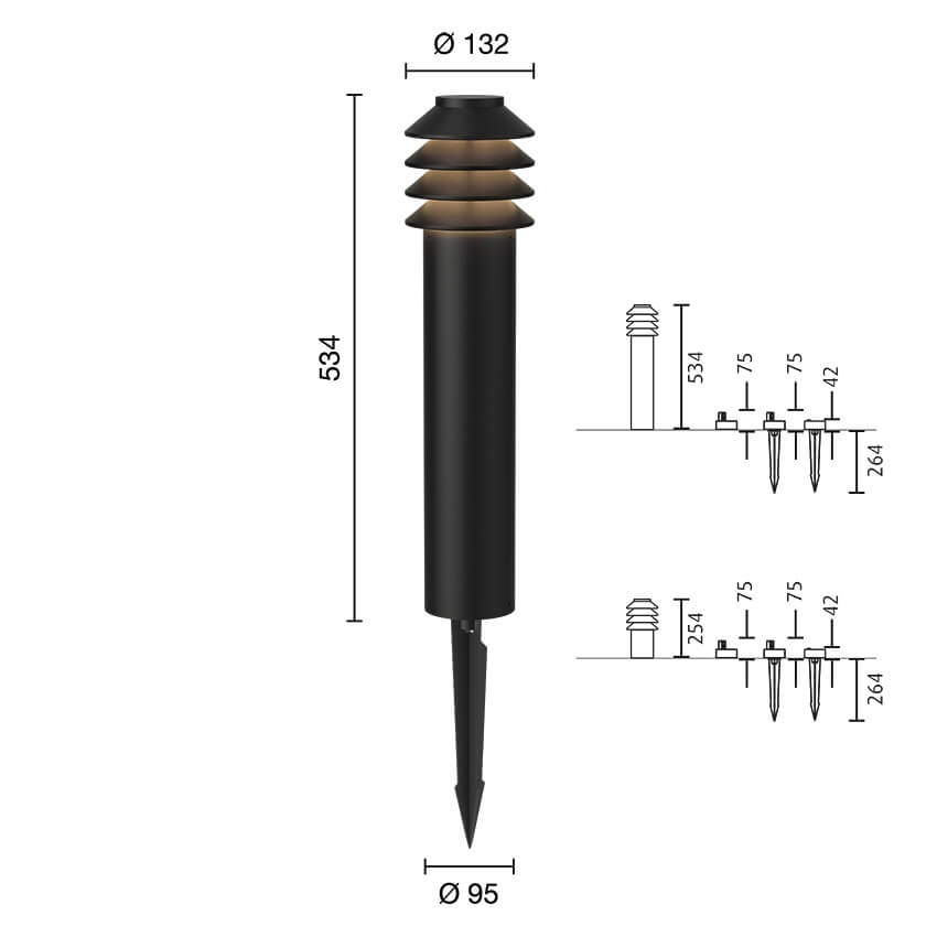 Die Lampe ist perfekt für den Garten und in zwei verschiedenen Höhen erhältlich. Darüber hinaus gibt es sie mit verschiedenen Installationsmöglichkeiten und sowohl mit 2700K als auch 3000K.