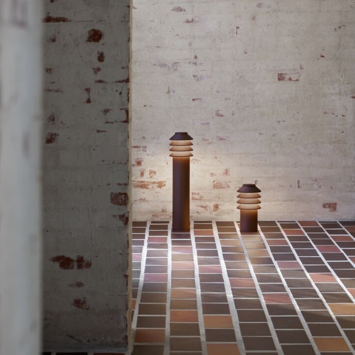 Louis Poulsen Bysted hoher Gartenpoller mit Spieß, Corten - entworfen von Peter Bysted