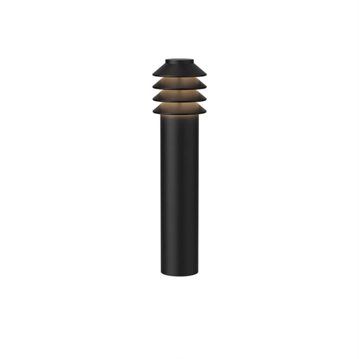 Bysted Gartenpoller besteht aus vier Ringen, die das Licht nach unten lenken. Das ausgestrahlte Licht ist ausgewogen und weich, wodurch ein charakteristisches Muster auf dem Boden entsteht.