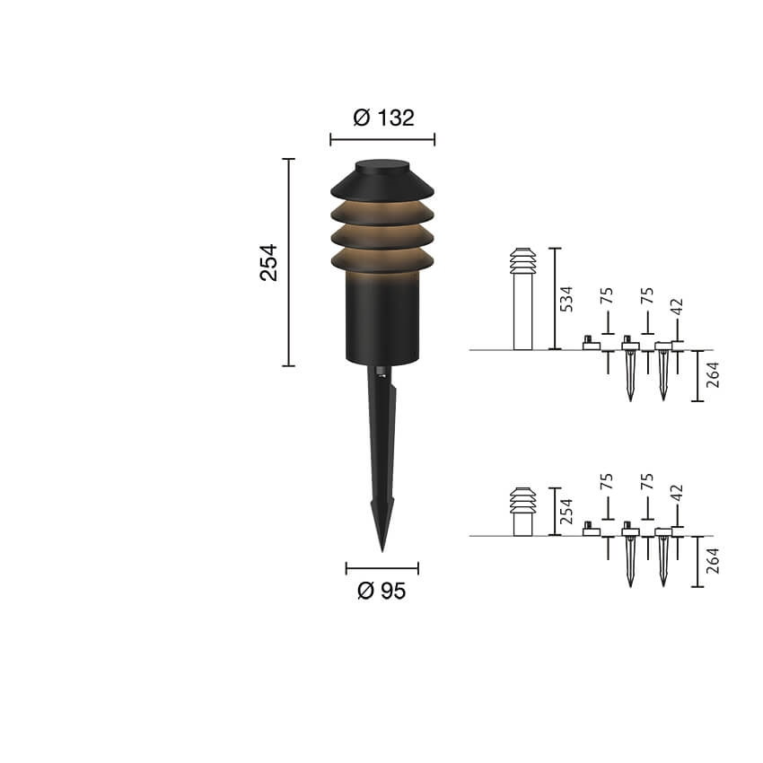 Die Lampe ist perfekt für den Garten und in zwei verschiedenen Höhen erhältlich. Darüber hinaus gibt es sie mit verschiedenen Installationsmöglichkeiten und sowohl mit 2700K als auch 3000K.