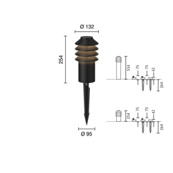 Bysted Gartenpoller ist eine neue und kleinere Version des bereits existierenden Bysted Pollers. Der Bysted Gartenpoller besteht aus vier Ringen, die das Licht nach unten lenken. Das ausgestrahlte Licht ist ausgewogen und weich, wodurch ein charakteristisches Muster auf dem Boden entsteht.