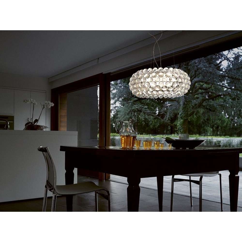 Der Schirm der Caboche Plus Grande Pendelleuchte besteht aus Kugeln aus Acryl. Das spezielle Design erzeugt eine fantastische mosaikartige Lichtbrechung, die das Licht der zentralen Lichtquelle verstärkt.