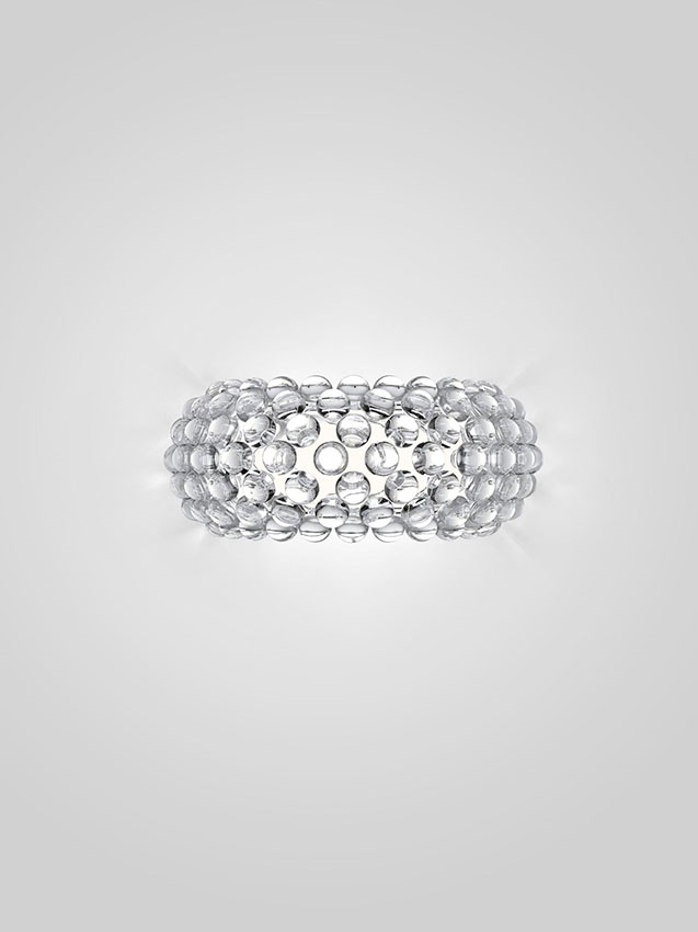 Der Schirm der Caboche Wandleuchte besteht aus Kugeln aus Acryl. Das spezielle Design sorgt für eine fantastische mosaikartige Lichtbrechung, die das Licht der zentralen Lichtquelle verstärkt.