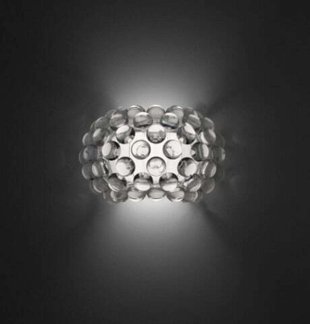Der Schirm der Caboche Wandleuchte besteht aus Kugeln aus Acryl. Das spezielle Design sorgt für eine fantastische mosaikartige Lichtbrechung, die das Licht der zentralen Lichtquelle verstärkt.