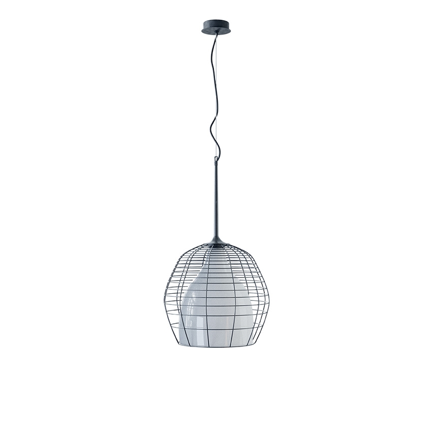 Diesel Living with Lodes Cage Pendelleuchte Large, schwarz/weiß – entworfen vom Diesel Creative Team.