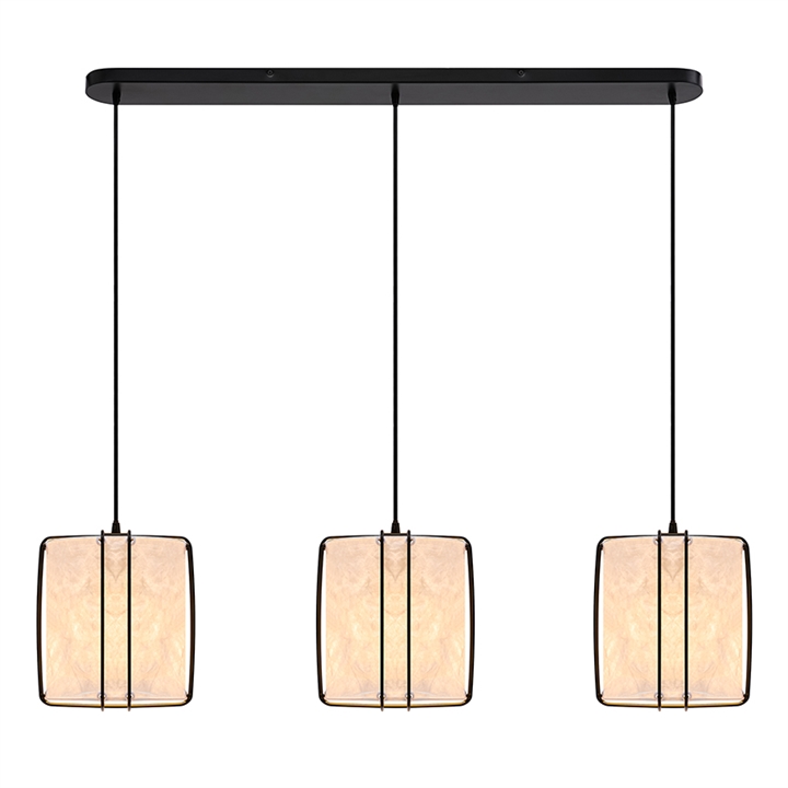 Cardine kommt als Set mit 3 Pendelleuchten, die zusammen eine Breite von 112 cm haben. Die Cardine-Serie hat einen modernen japanischen Ausdruck, der mit nordischer Minimalismus kombiniert wird. Der leicht gekräuselte Papierschirm ist an dünnen Metalldrähten aufgehängt und sorgt für ein angenehmes, diffuses Licht.