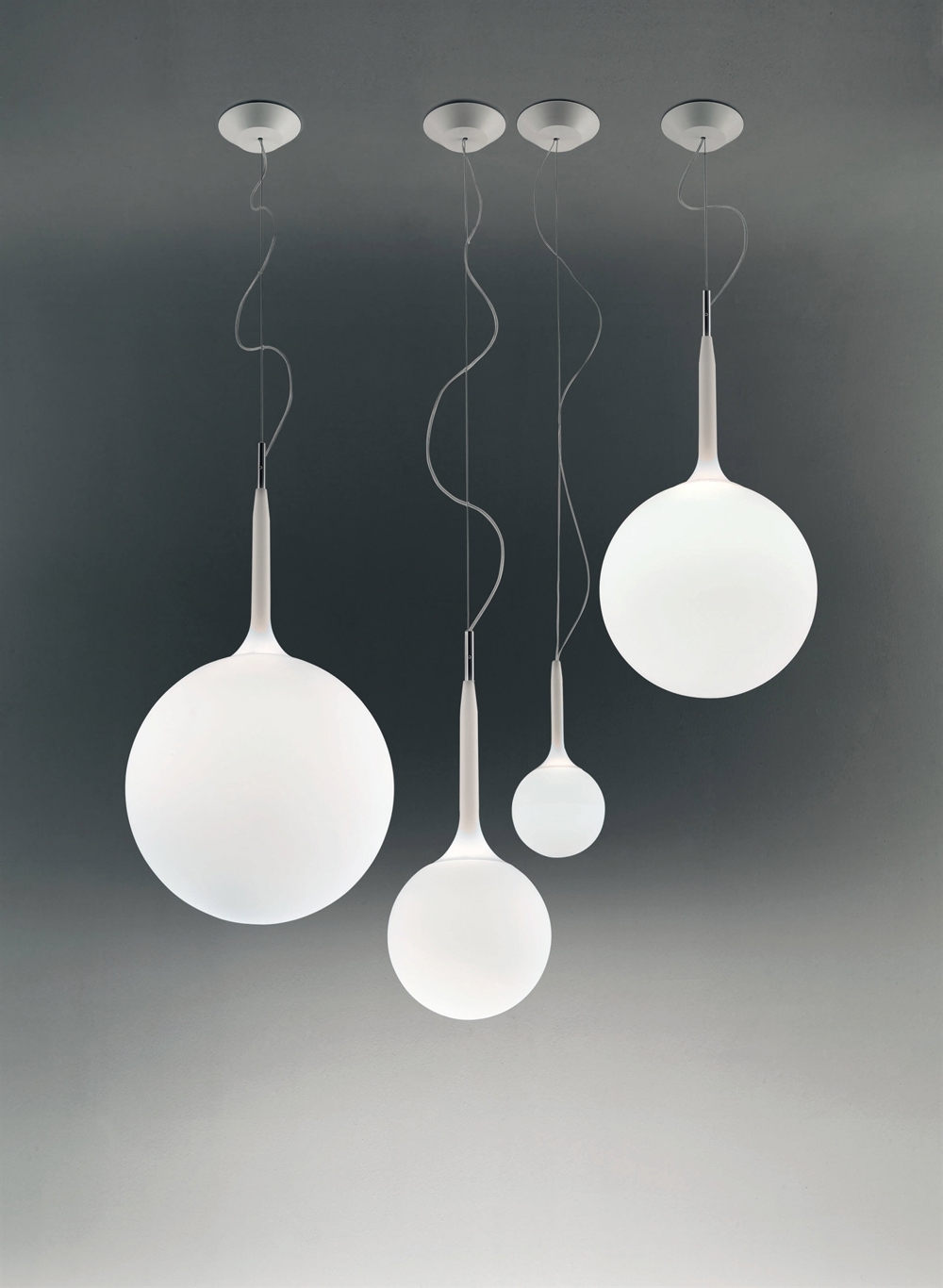 Die Castore Pendelleuchte ist in verschiedenen Größen und als Tischlampe oder Stehlampe erhältlich.