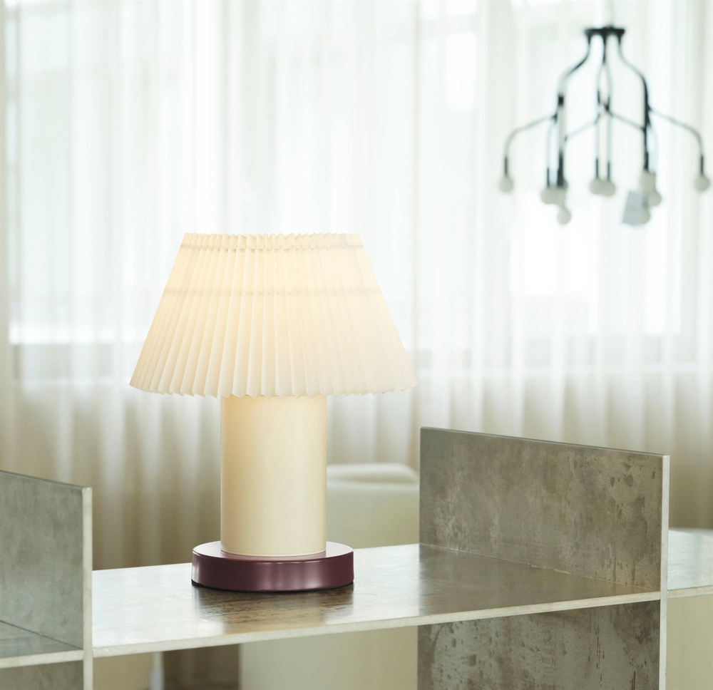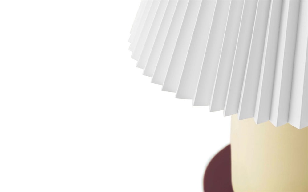 Die Cellu Tischlampe hat einen klassischen gefalteten Lampenschirm und präsentiert sich mit einem modernen Ausdruck. Der Schirm besteht aus PVC und ruht auf einem pulverbeschichteten Aluminiumfuß und einer pulverbeschichteten Stahlbasis.