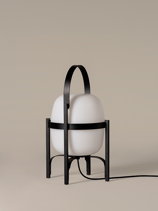 Santa & Cole Cesta Exterior Außen Tischleuchte, schwarz - entworfen von Miguel Milá.