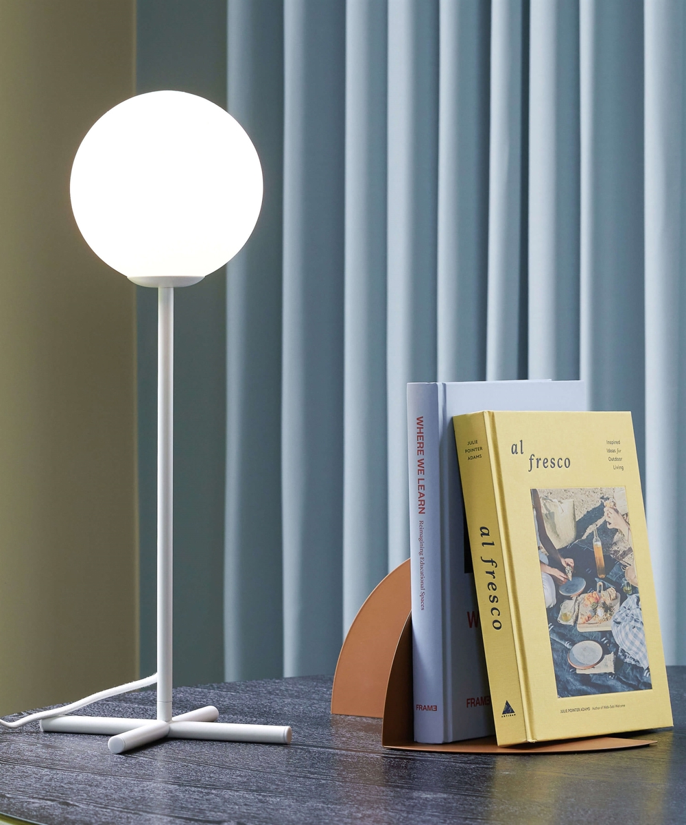 Die Tischlampe Champ hat ein schlankes und stilvolles Design, das jedem Raum einen raffinierten Ausdruck verleiht. Die auffällige Silhouette der Lampe macht sie zu einem dekorativen Element, das gleichzeitig als funktionale Beleuchtung dient. Der weiße Glasschirm sorgt für ein scharfes, klares Leuchten, das perfekt zu den meisten Einrichtungsstilen passt