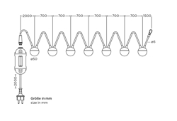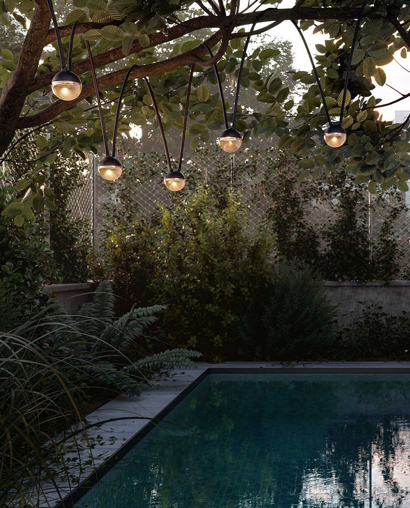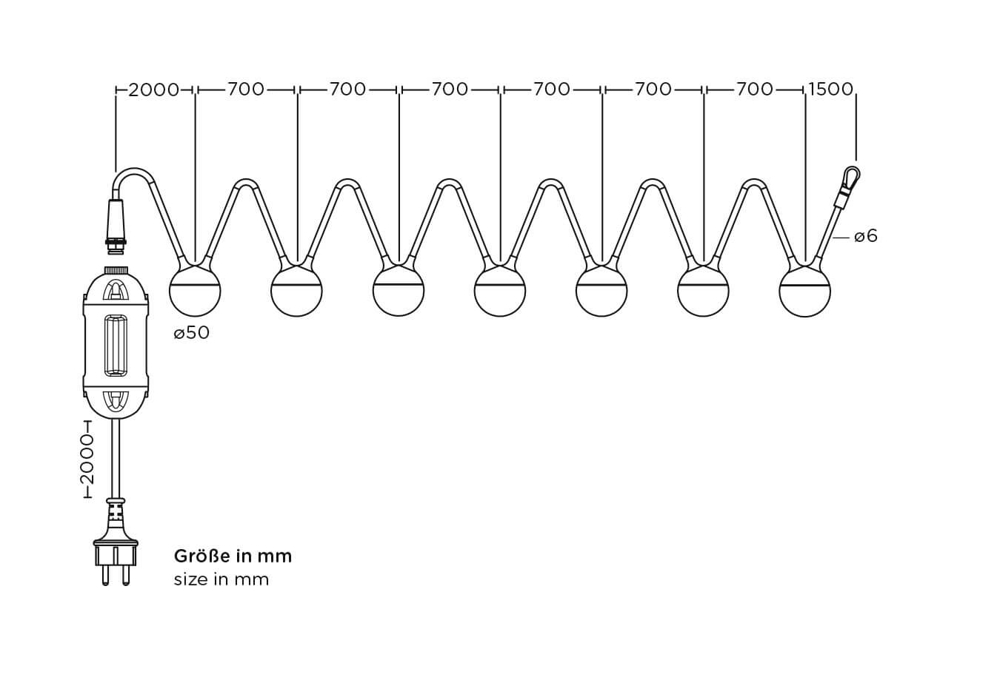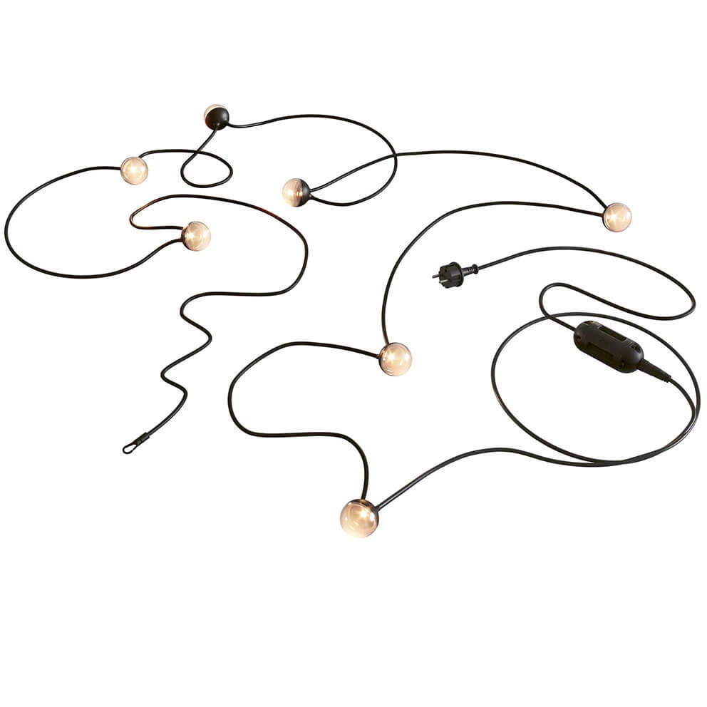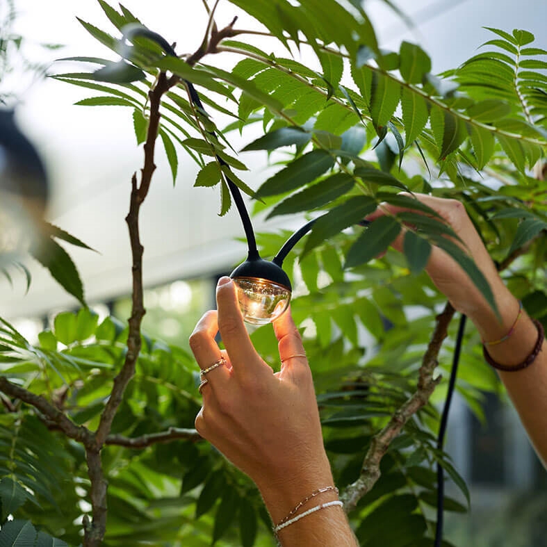 Cherry Bubbls Plug ist eine LED-Lichterkette, die ideal ist, um draußen Stimmung und Atmosphäre zu schaffen. Die Kette besteht aus sieben Pendelleuchten mit rauchfarbenem Glas und einem Abstand von 70 cm zwischen den einzelnen Leuchten. Die Lichterkette hat eine Gesamtlänge von 9,82 m, muss an eine Steckdose angeschlossen werden und ist für den Außenbereich konzipiert. Hängen Sie sie in einen Baum im Garten oder verwenden Sie sie als Terrassenlampe oder eventuell über dem Gartentisch, indem Sie die Kette mit zwei Stangen anheben, die separat als Cherry Bubbls Canes erhältlich sind und einfach am Tisch montiert werden können.