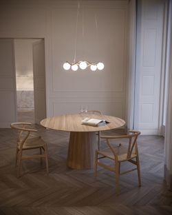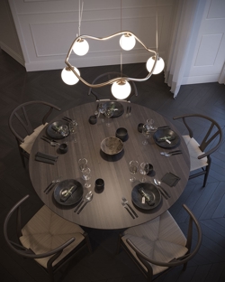 Der Kronleuchter Circle of Life ist in zwei Größen erhältlich. Die große in zwei Varianten mit Schirmen in Ø11 cm bzw. Ø15 cm. Außerdem gibt es Pendelleuchten in zwei Größen in der Lampenserie.