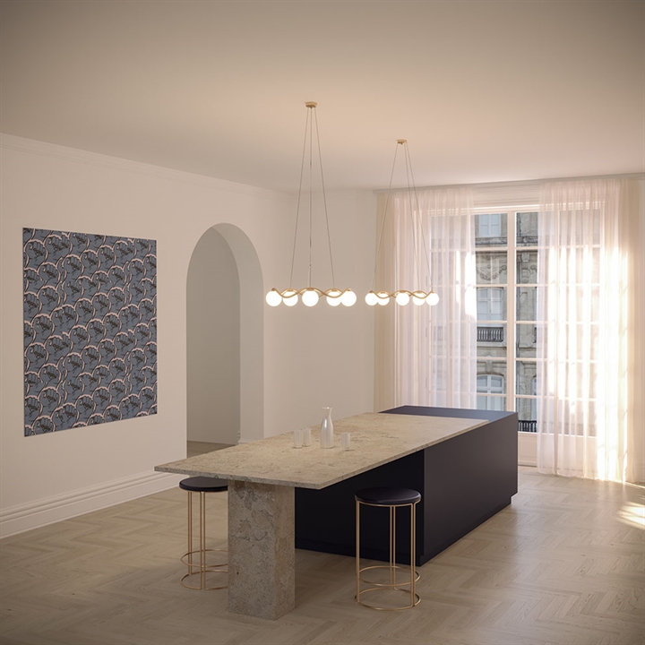 Der Kronleuchter Circle of Life ist in zwei Größen erhältlich. Es gibt auch Pendelleuchten in zwei Größen in der Lampenserie.