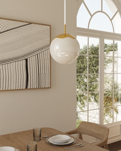 Die Pendelleuchte Circle of Life hat ein beeindruckendes und skulpturales Design, inspiriert von den Höhen und Tiefen des Lebens, und erhält in dieser Variante durch das weiße Kabel einen hellen und harmonischen Touch. Die Oberseite aus handgefertigtem poliertem Messing verleiht dem Design Exklusivität und reflektiert das warme Licht der kugelförmigen Schirm aus mundgeblasenem Opalglas.