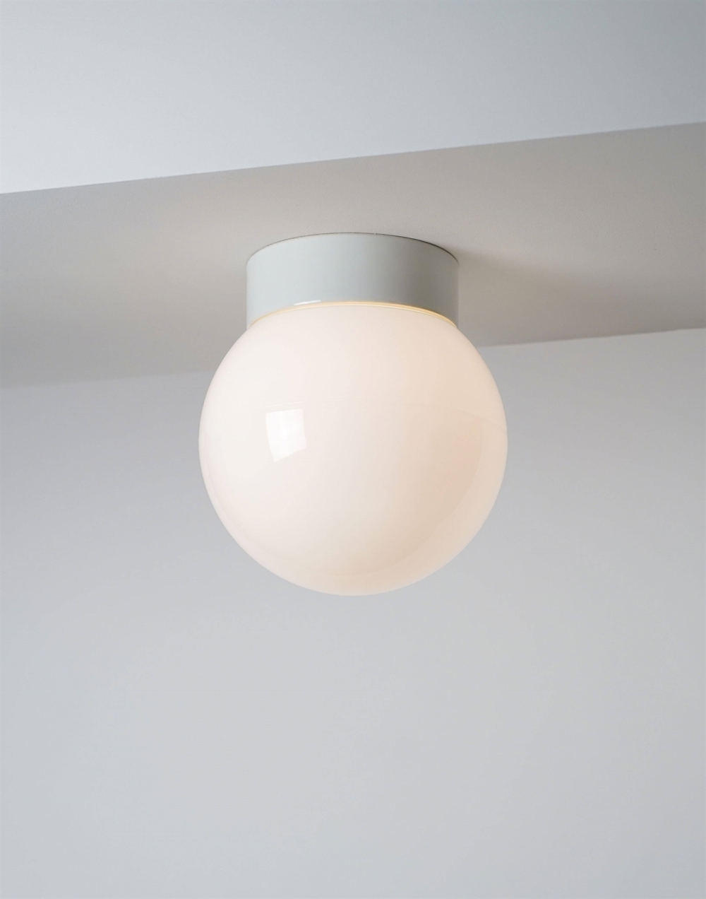 Classic Globe 200 kann als Deckenleuchte oder Wandleuchte verwendet werden und ist dank ihrer IP44-Klassifizierung seit vielen Jahren ein Favorit für das Badezimmer. Die Lampe kann auch im Freien eingesetzt werden. Classic Globe kombiniert Funktionalität mit zeitlosem Design und verfügt über einen Schirm aus mattem Opalglas und, wie bei vielen Ifö-Lampen, über eine Basis aus Porzellan.