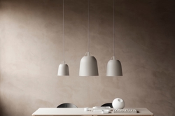 Die Clover Pendelleuchte ist in drei Größen in Schwarz, Weiß, Stone und Burgundy Rot erhältlich.