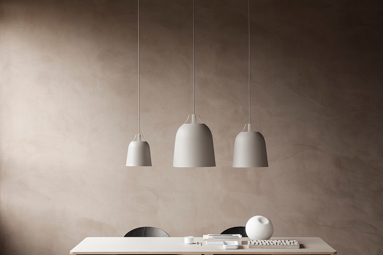Die Clover Pendelleuchte ist in drei Größen in Schwarz, Weiß, Stone und Burgundy Rot erhältlich.