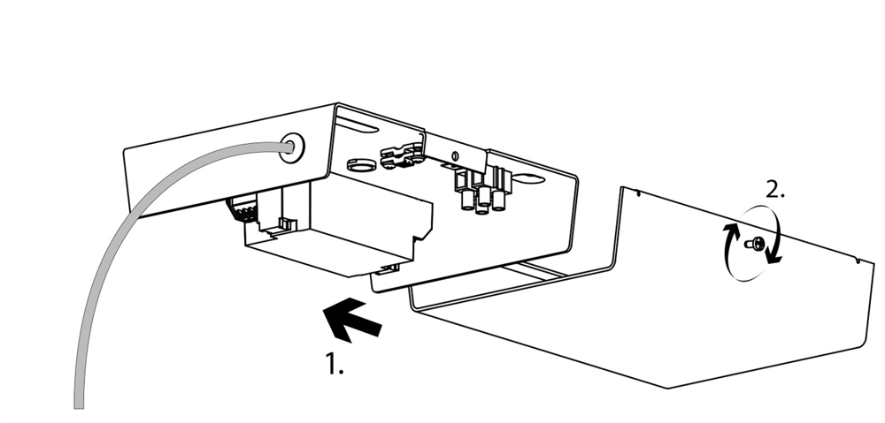 Diese weiße Rosette mit Fernbedienungstreiber ist Zubehör für die Compendium Pendelleuchte. Die elegante Pendelleuchte hat eine schlanke Silhouette und kann so eingestellt werden, dass sie entweder direktes nach unten gerichtetes Licht oder indirektes nach oben gerichtetes Licht liefert.
