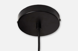 Die Außenseite der Lampenschirme ist aus schwarz lackiertem Metall und die Innenseite aus hellgrau lackiertem Metall.