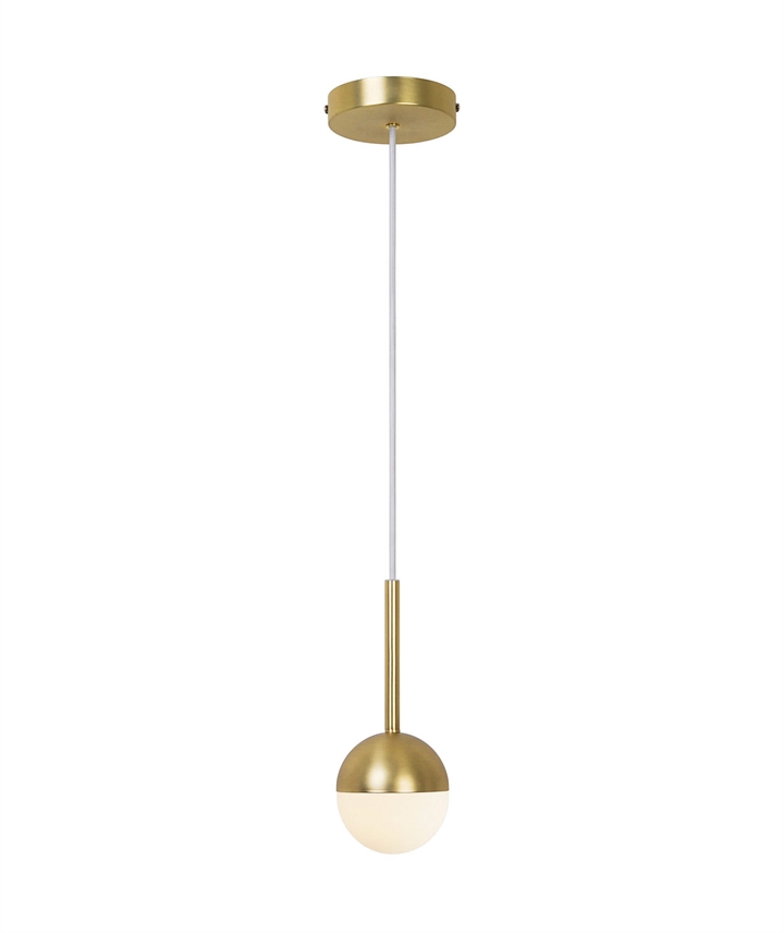 Die Pendelleuchte Contina hat ein schlankes Design und ein weiches, angenehmes Licht. Die kugelförmige, matte, opalweiße Glaskuppel verleiht der Pendelleuchte einen eleganten Ausdruck im modernen Art-Deco-Stil. Jede Glaskuppel ist mundgeblasen, daher können Luftblasen im Glas auftreten, die auch in der Dicke variieren können. Diese Herstellung verleiht dem Glas Charakter und ein lebendiges Aussehen.