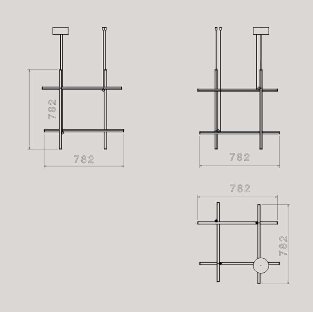Jedes Element besteht aus extrudiertem eloxiertem Aluminium mit einer Champagner-Oberfläche und einem Diffusor aus platinoptischem Silikon mit einem integrierten LED-Streifen (CRI 95). Jedes Element wird durch eine unsichtbare elektrische und mechanische Verbindung betrieben und unterstützt, die speziell entwickelt wurde, um die Zusammensetzung der 3 Deckenmodelle (C1 - C2 - C4) zu ermöglichen, die mit den jeweiligen langen Versionen für die höchsten Decken (C1 Long, C2 Lang, C4 Lang) kombiniert werden können. Das 'C-Modul' ist ebenfalls erhältlich.