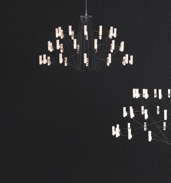 Dieser einzigartige Kronleuchter ist inspiriert vom bekannten Coppélia-Ballett. Die lieblichen und filigranen Tanzbewegungen der Ballerina wollte Miyake insbesondere mit dem Coppélia Kronleuchter nachbilden.