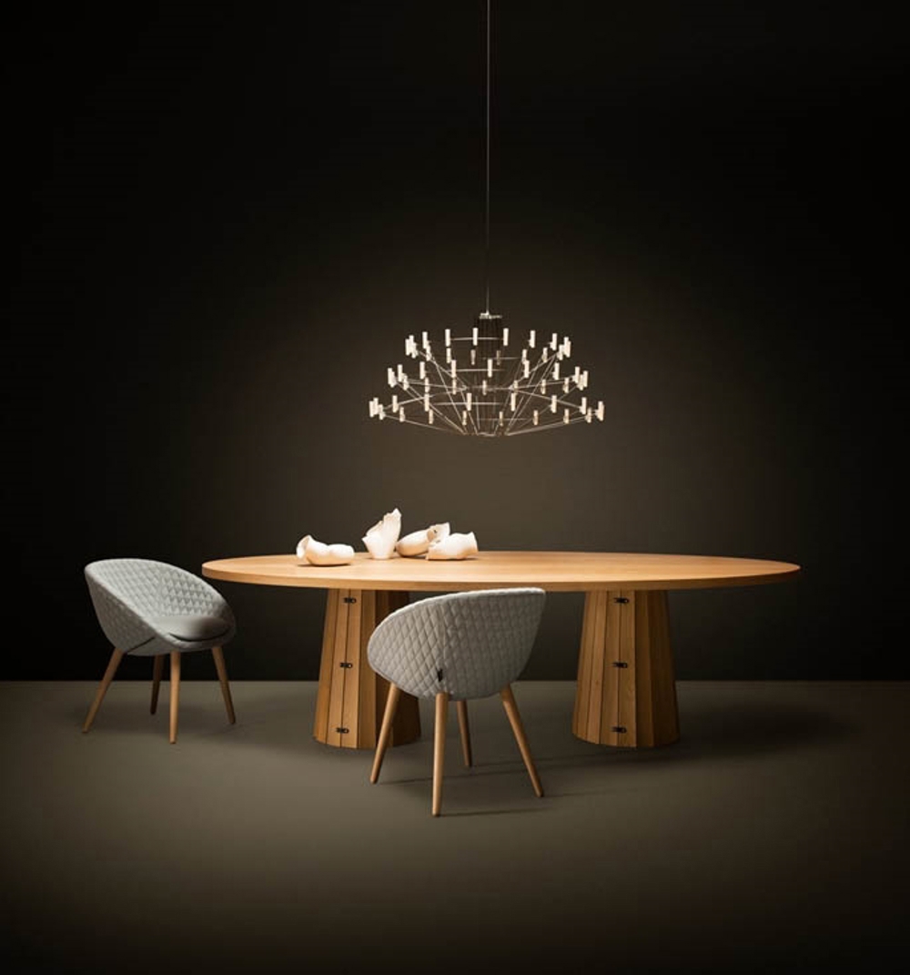 Dieser einzigartige Kronleuchter ist vom bekannten Coppélia-Ballett inspiriert. Die lieblichen und filigranen Tanzbewegungen der Ballerina wollte Miyake mit dem Coppélia Kronleuchter besonders nachbilden.