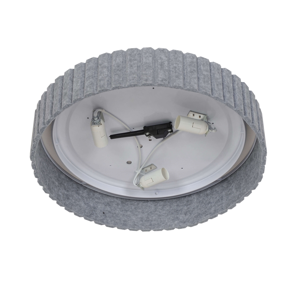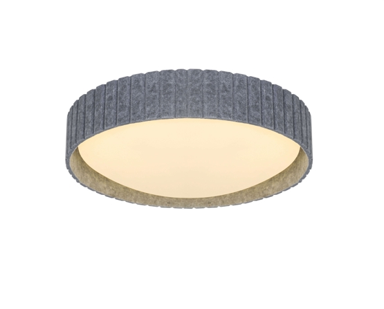 Die Deckenleuchte Corato ist in zwei Größen erhältlich mit Schirmen aus Kunststoff, umgeben von grauem Filz, der den Lampen einen dekorativen und weichen Ausdruck verleiht. Eine elegante Deckenleuchte in klassischer Form und mit einem unkonventionellen Finish. Sie liefert ein weiches und angenehmes indirektes Licht.