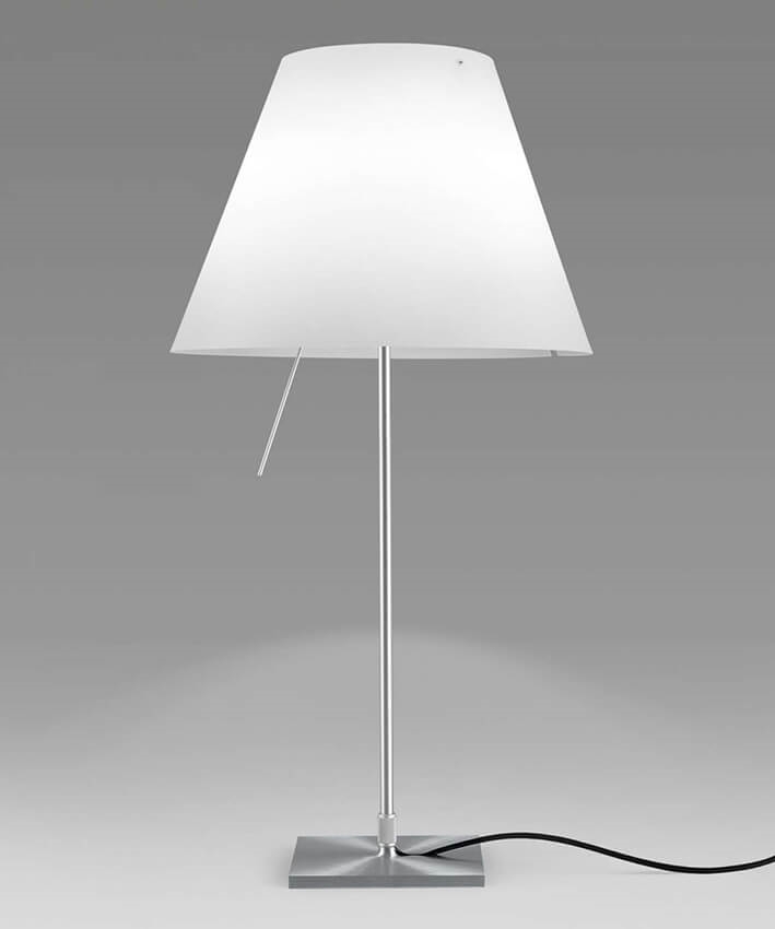 Costanza ist eine einfache und stilvolle Tischleuchte, die mit ihrem Touch-Dimmer das Ein- und Ausschalten des Lichts in 4 spezifischen Lichtstufen ermöglicht. Die Lampe besteht aus Aluminium und hat einen weiß seidenbeschnittenen Schirm aus Polycarbonat, der ein angenehmes Licht abgibt. Der Lampenschirm ist austauschbar, sodass es möglich ist, mit den anderen schönen Lampenschirmen der Costanza-Serie zu variieren.