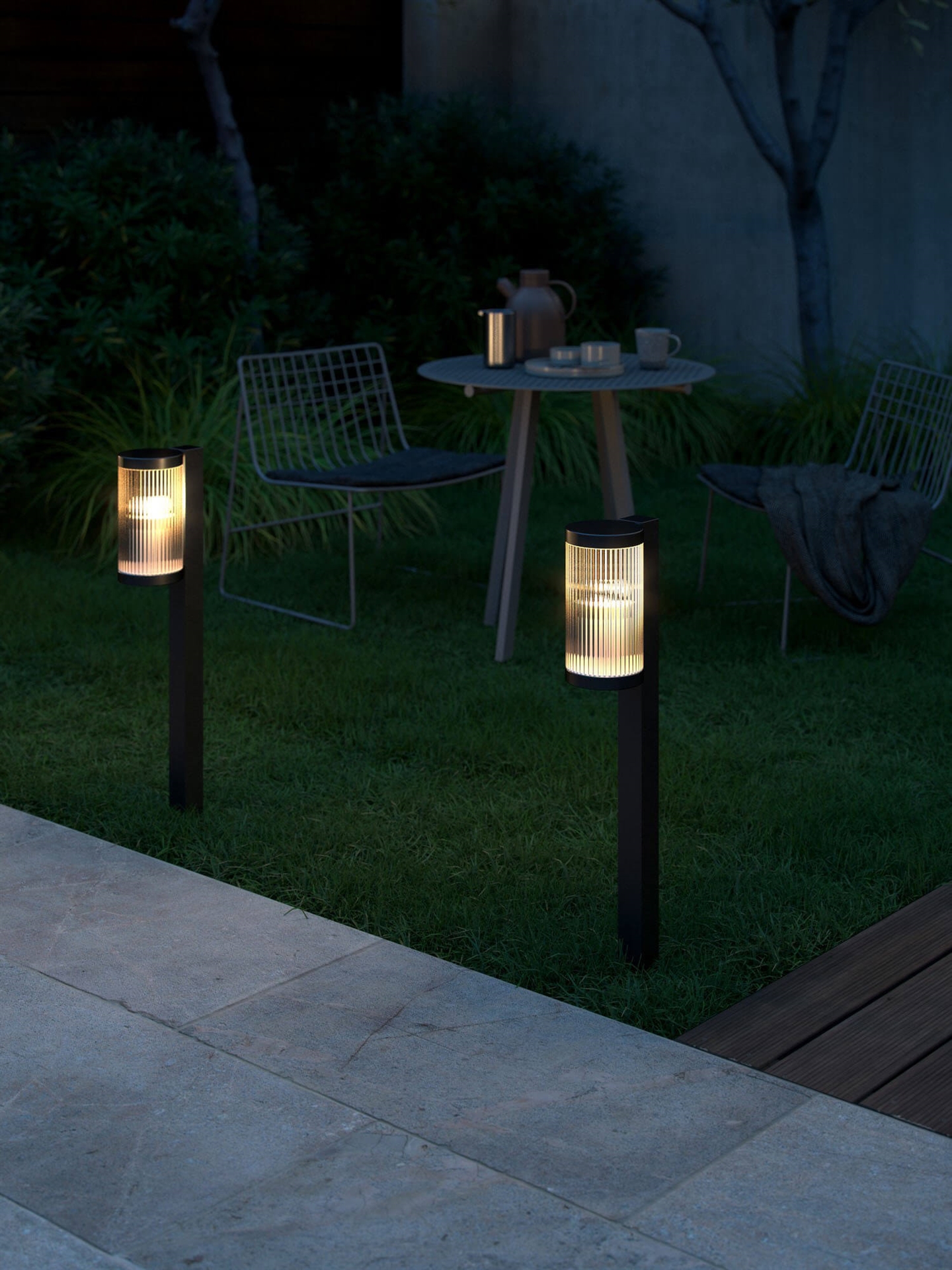 Die Gartenlampe Coupar ist dänisches Design und eine moderne Interpretation der traditionellen Außenlaterne. Der gerippte Schirm der Lampe sorgt für ein angenehmes Licht und trägt zu einem schönen Lichtspiel in Ihrer Außenumgebung bei.