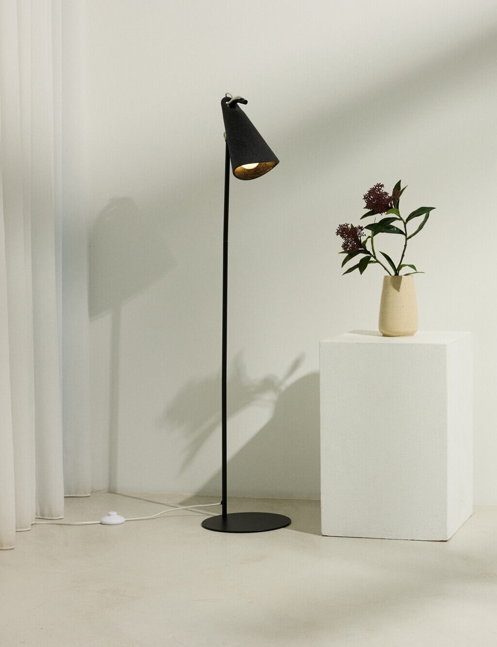 Die zeitlose Stehlampe Decor Bell in Schwarz, hergestellt aus Stahl mit einem Schirm aus recyceltem Polyethylen, ist eine ideale Wahl als Leselicht neben dem Sessel im Wohnzimmer. Die Position des Schirms kann verändert werden. Die Stehlampe lässt sich ideal mit anderen Lampen der Decor Bell-Serie kombinieren, um ein harmonisches Einrichtungskonzept zu schaffen.