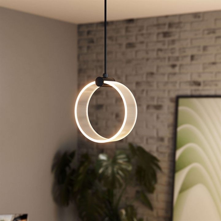 Decor Circle 1 aus langlebigem Acryl und Metall ist geeignet für Wohn- oder Schlafzimmer sowie als Beleuchtung im Flur und Treppenhaus. Die raffinierte Pendelleuchte ist einfach zu montieren.