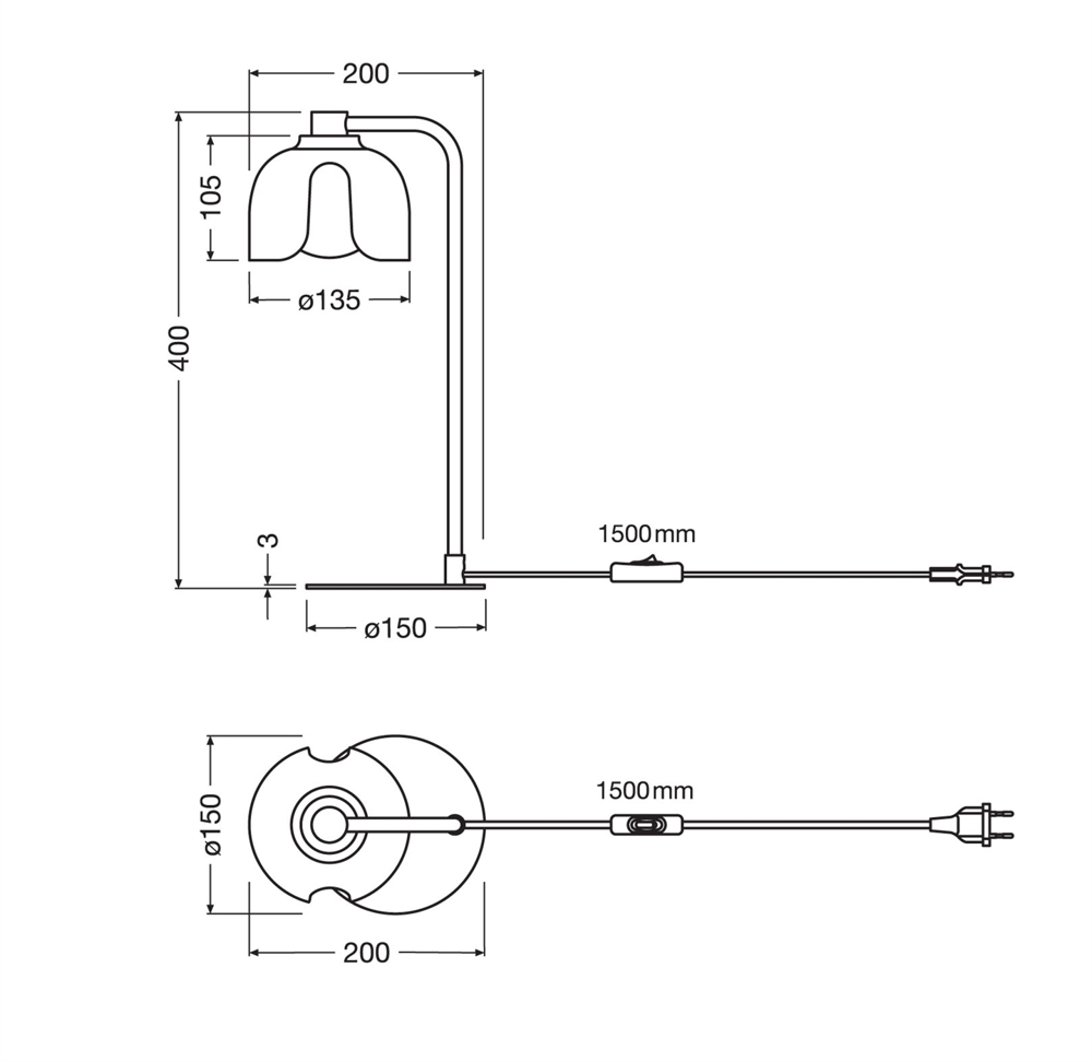 Masse: H40 x D20 cm, Basis: Ø15 cm, Schirm: Ø13,5 x H10,5 cm