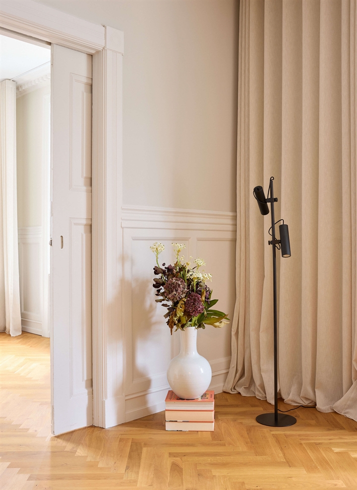 Die Stehlampe kann vorteilhaft mit anderen Lampen der Decor Drums-Serie kombiniert werden, um ein einheitliches Erscheinungsbild in der Einrichtung zu schaffen.